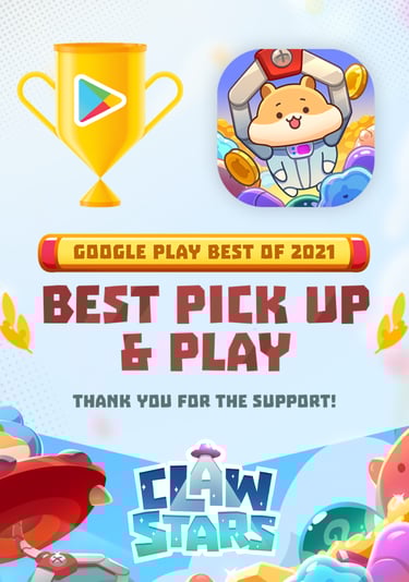 Growing the player base with acquisition ads, social campaigns and press exposure made it one of the latest successes of the company. Claw Stars was even awarded Google Play Best of 2021 "Best Pick Up & Play".